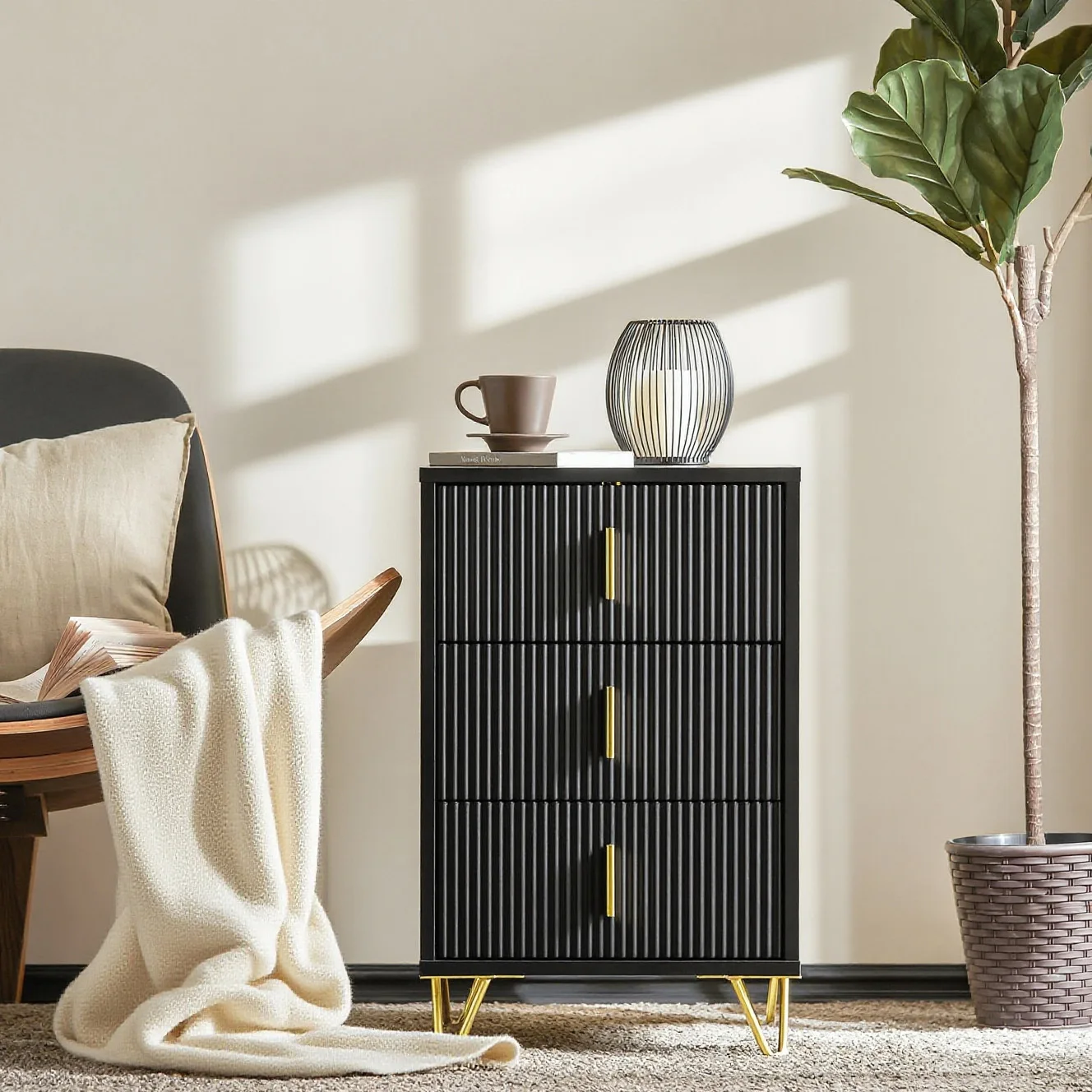 1pc Nightstand – Bedside Table with 3 drawers, Side Table for Bedroom – Modern Storage Furniture, Black L40 x W40 x H63 cm – GCU