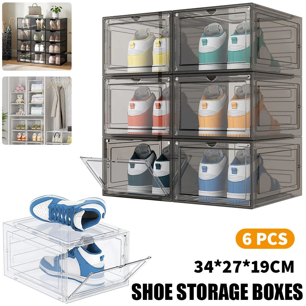 6 PARK Shoe Box Storage Case Hard Plastic Boxes Transparent Stackable Shoe Display