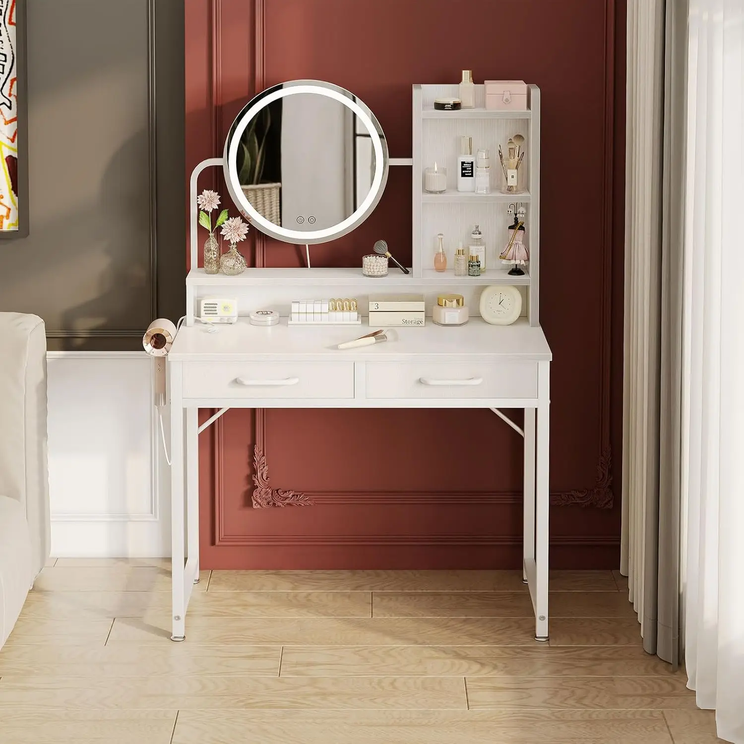 Coleshome Dressing Table with height-adjustable Mirror for 120-180 cm, Vanity Table with 2 fabric Drawers 80×40×136cm, White