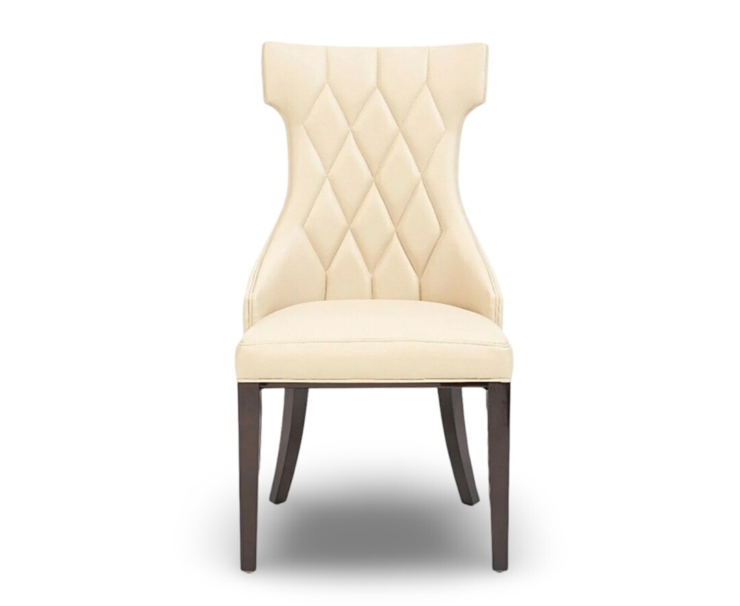 With an elegant diamond stitched design and sturdy legs with a gloss finish, the faux leather Sophia chairs make a stylish statement in any dining room.