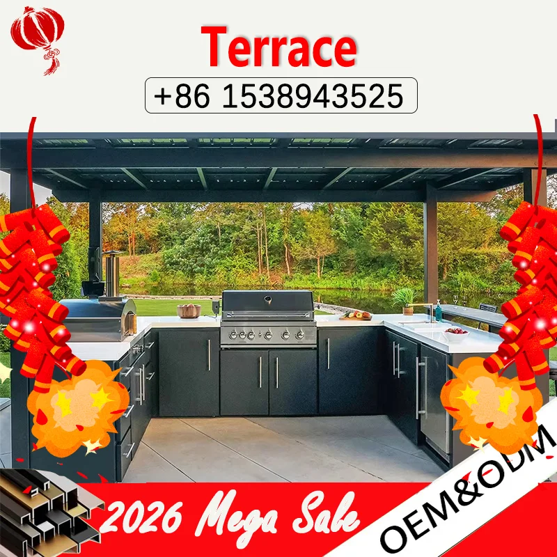 Customized 304 Stainless Steel Outdoor Kitchen Cabinet with Sink Weatherproof Rust Resistant for Garden Barbecue Terraces Patio