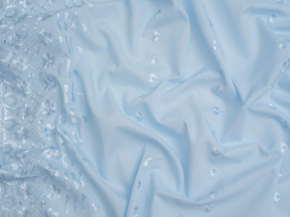 Double Border Broderie Anglaise Cotton Fabric Blue