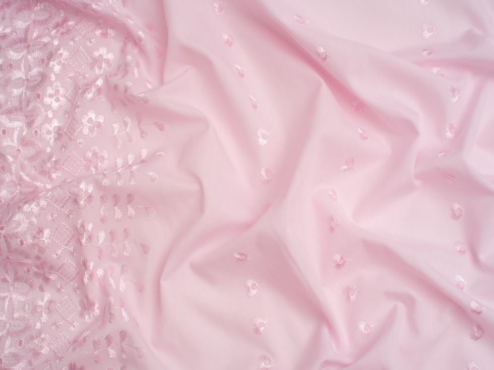 Double Border Broderie Anglaise Cotton Fabric Pink