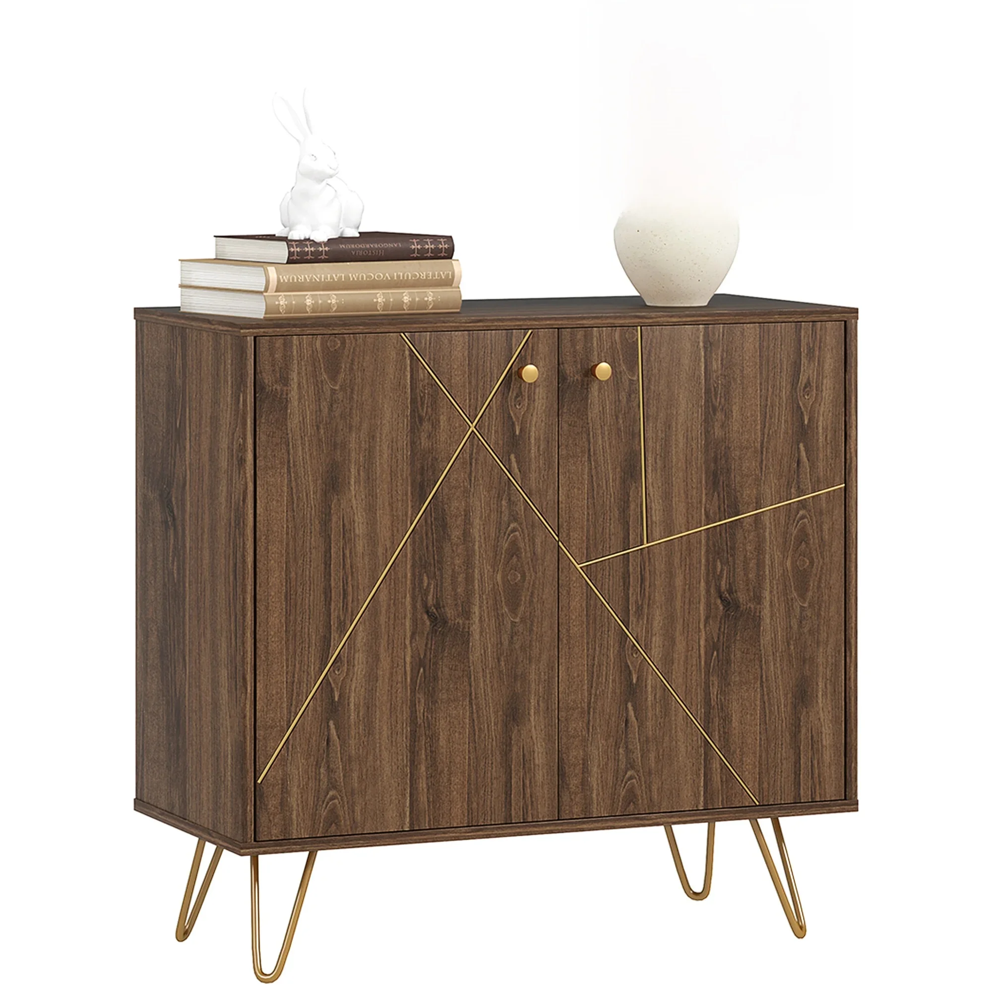 HOMCOM Sideboard Storage Cabinet with Luxurious Steel Lines Steel Legs Brown