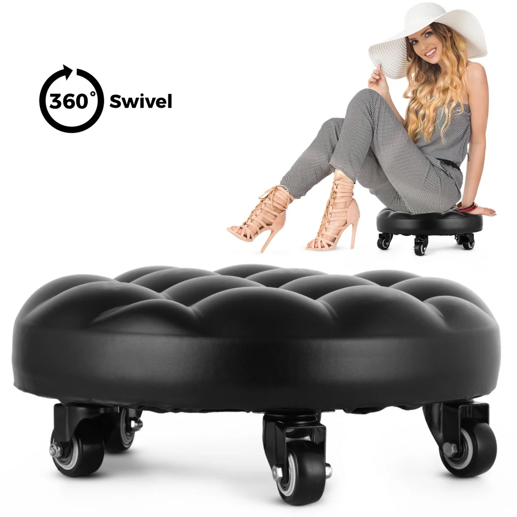 Low Rolling Stool Soft PU Low Wheel Stool 360 Degree Rotating Floor Stool Round Seat Stool Low-Height Rolling Seat For Home