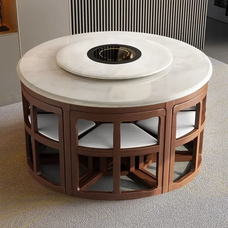 Marble dining table and chair combination, modern simple telescopic home dining table