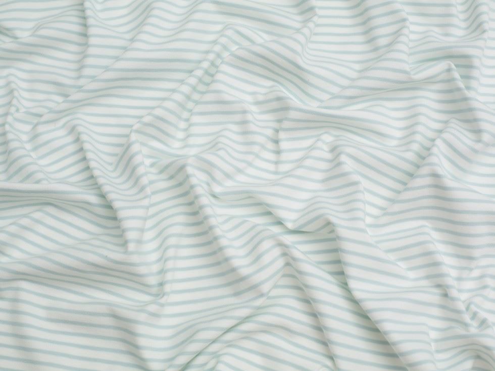 A fantastic quality stripe cotton jersey fabric from the Minerva Core Range collection. Cotton jersey is a knit fabric that is relatively easy to sew, ideal for anyone new to sewing with knit fabrics. It is made from 95% cotton and 5% elastane fibres which gives it a beautiful softness, but it still has body. The stripes in this fabric are knitted into the fabric itself, rather than printed on the surface, so you know the lines are always on grain and fantastic quality. This fabric weighs approx. 220gsm which puts it into our medium weight category here at Minerva. It is ideal for making t shirts, tops, summer skirts, dresses and shorts. It is also ideal for children and baby clothes.