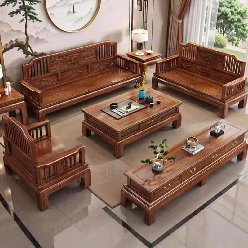 New Chinese Style Solid Wood Sofa Set Golden Rosewood Antique Couch for Living Room Small Apartment Dual-Purpose Furniture