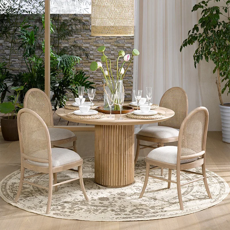 Nordic-Style Rattan & Wood Dining Table and Chair Set – Backrest Stools for Home Homestays & Inns