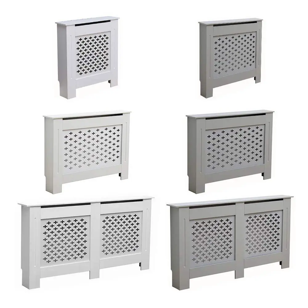 Radiator Cover Modern MDF Wood White Grey Cross Pattern Living Room Bedroom Hallway Cabinet Large White