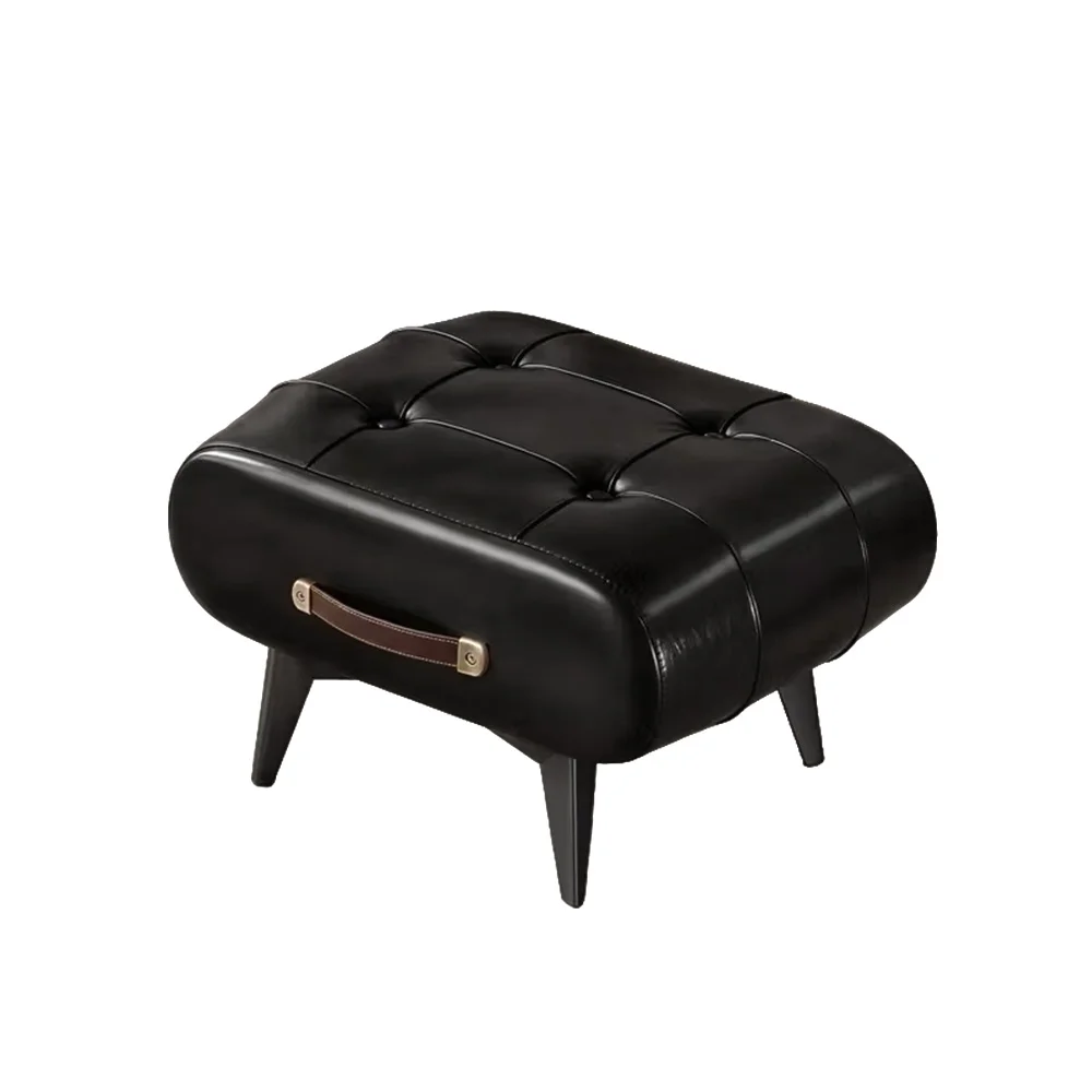 Small Foot Stool, Faux Leather Footstool with Legs, Footstools for Living Room, Footrest Extra Seating for Entryway, Black