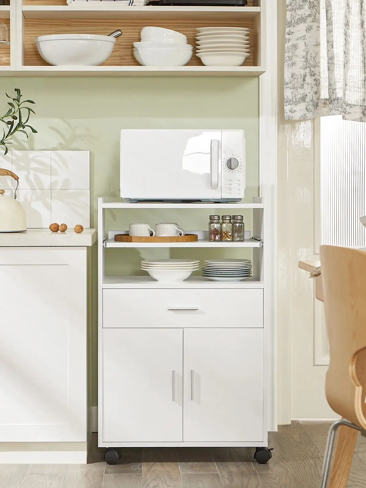 SoBuy FSB09-W Kitchen Trolley Kitchen Island with Wheels Microwave Stand Cabinet Small Mobile Cart Cabinet for Home